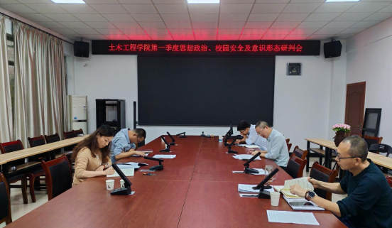 首先,党委宣传统战委员就学院第一季度思想政治、校园安全及意识形态工作进行汇报。随后,各班子成员就各自分管领域的安全及意识形态风险点进行研判。