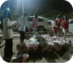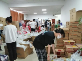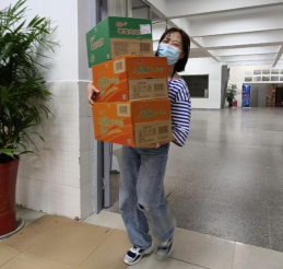 院领导实在是心疼老师们次日还需值班,特叫来学生志愿者前来帮忙,听说是优秀校友捐赠的物资,同学们个个干劲十足,肩扛手提,汗流浃背直至全身湿透,在师生们齐心协力、共同奋斗近两个小时后,所有的捐赠物资全部卸载及搬运完毕。